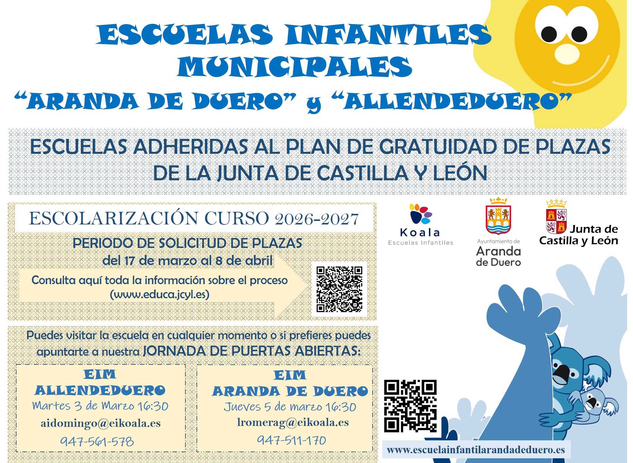 Abierto el Periodo de Solicitud de Plaza para el curso 2026-2027 El plazo publicado por la Junta de Castilla y León es del 17 de marzo al 8 de abril … MÁS